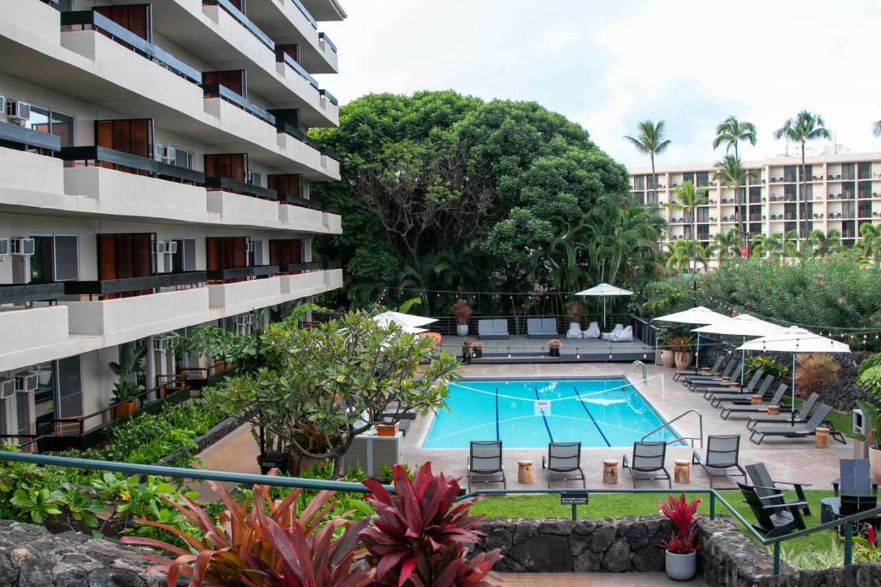 - Kona: Pacific 19 Hotel. Recently renovated, awesome pool, didn’t require a second mortgage.